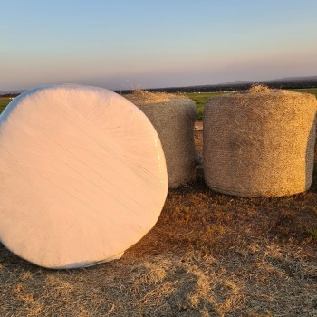 Oferecemos também aos nossos clientes que não têm local adequado de armazenamento, feno em fardos cilíndricos de 350 a 400 kg, embalados com plástico filme de alta tecnologia e qualidade, com proteção UV. Oferecemos ainda, especialmente para os pecuaristas de gado leiteiro, o feno já picado em partículas com cerca de 10 cm, que facilita uma mistura homogênea da dieta no vagão forrageiro. É muito mais economia, praticidade, qualidade e tranquilidade para o manejo dos nossos clientes.